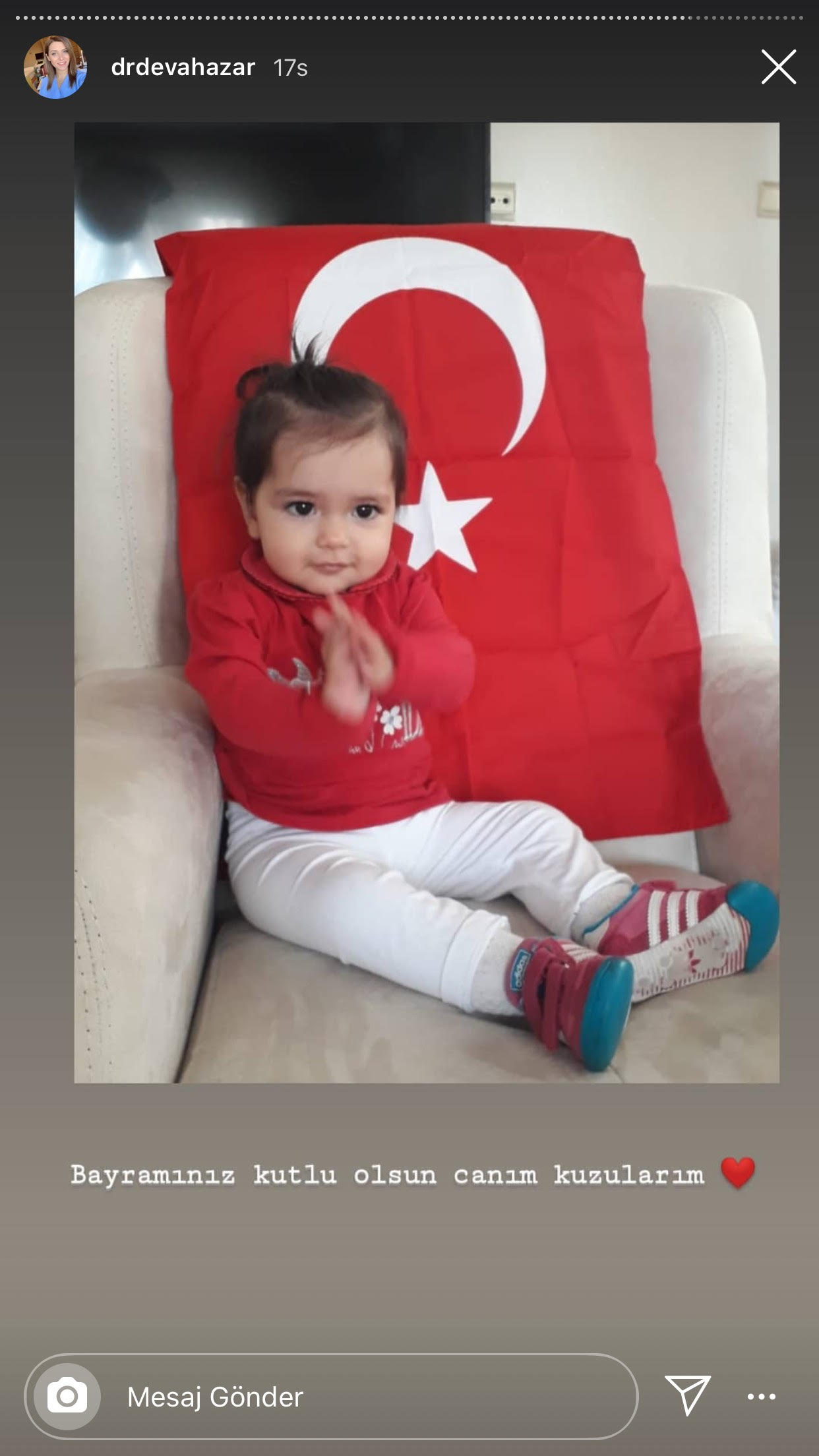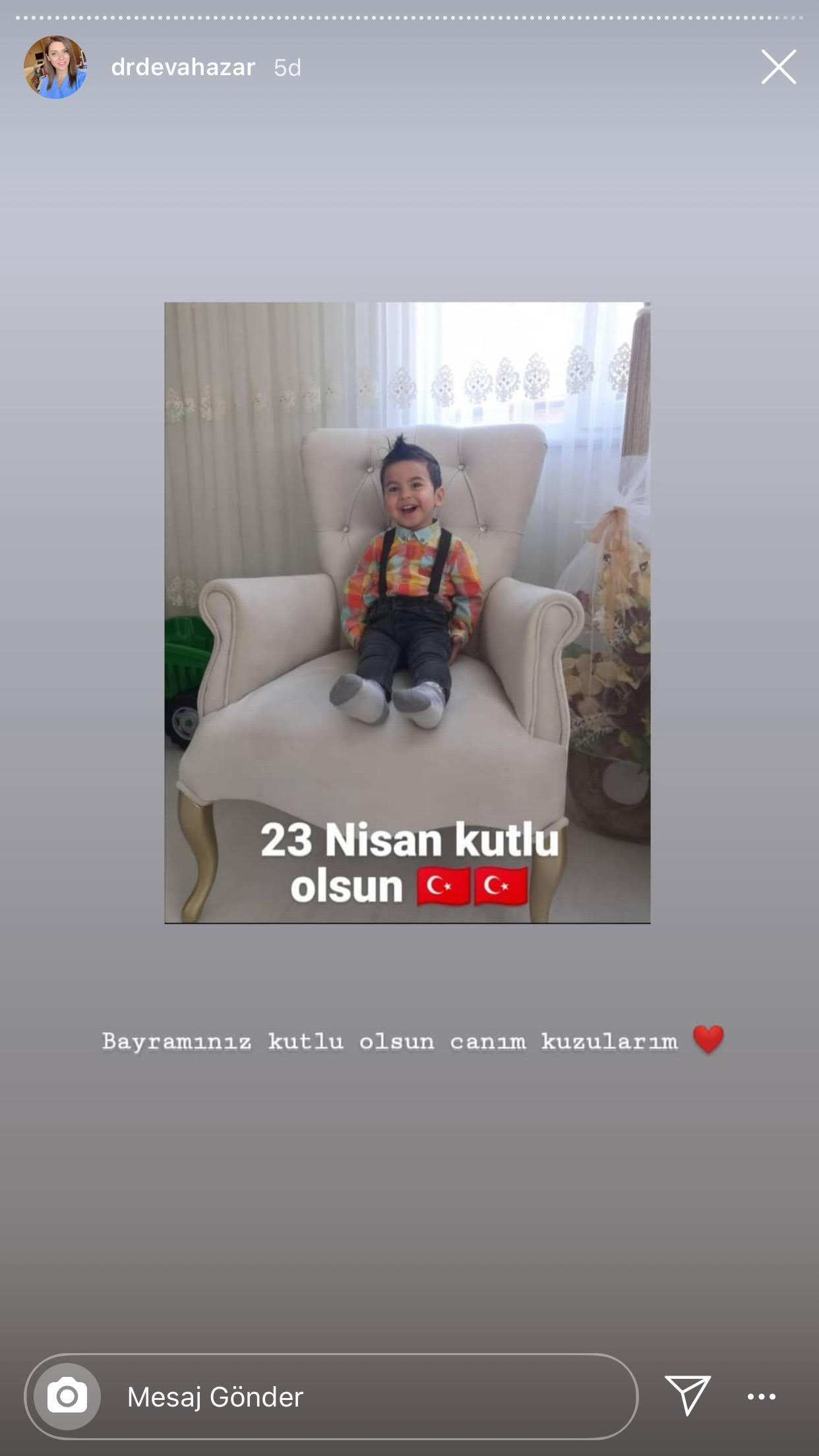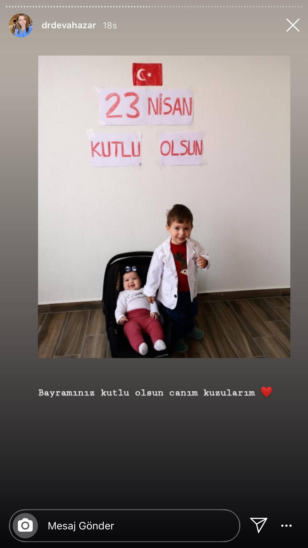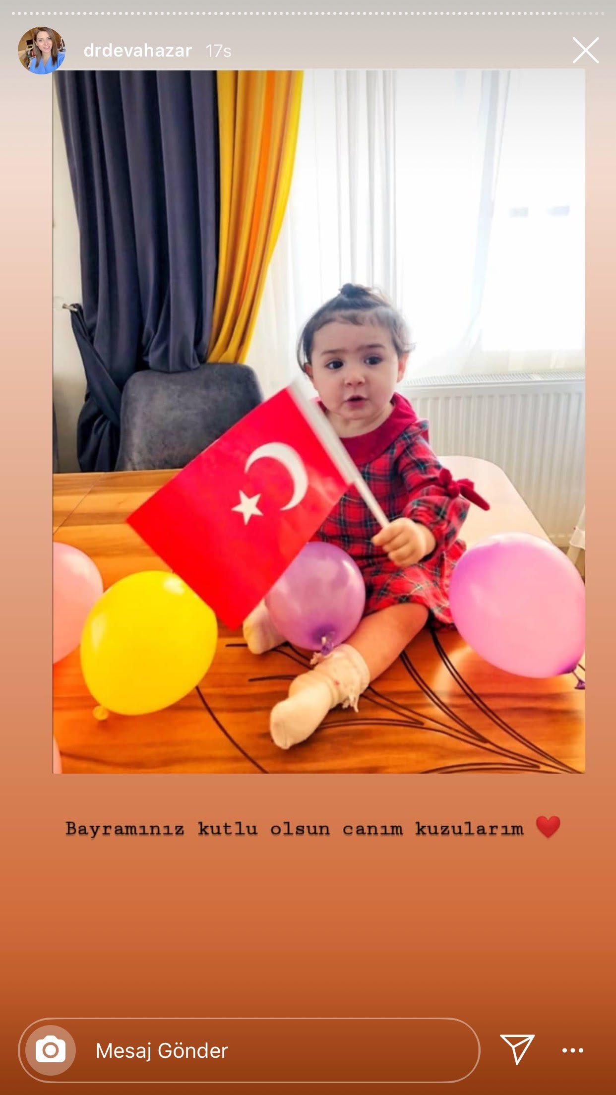 23 Nisan Ulusal Egemenlik ve Çocuk Bayramı dolayısıyla çocuklar, mutluluklarını çok sevdikleri doktorlarıyla paylaştı. Aileler çektikleri fotoğraflarını doktorlarına gönderdi. Doktor Deva Hazar, çocukların fotoğraflarının tümünü, “Bayramınız kutlu olsun canım kuzularım” notuyla paylaştı. O fotoğraflar doktorun takipçileri tarafından ilgiyle izlendi.