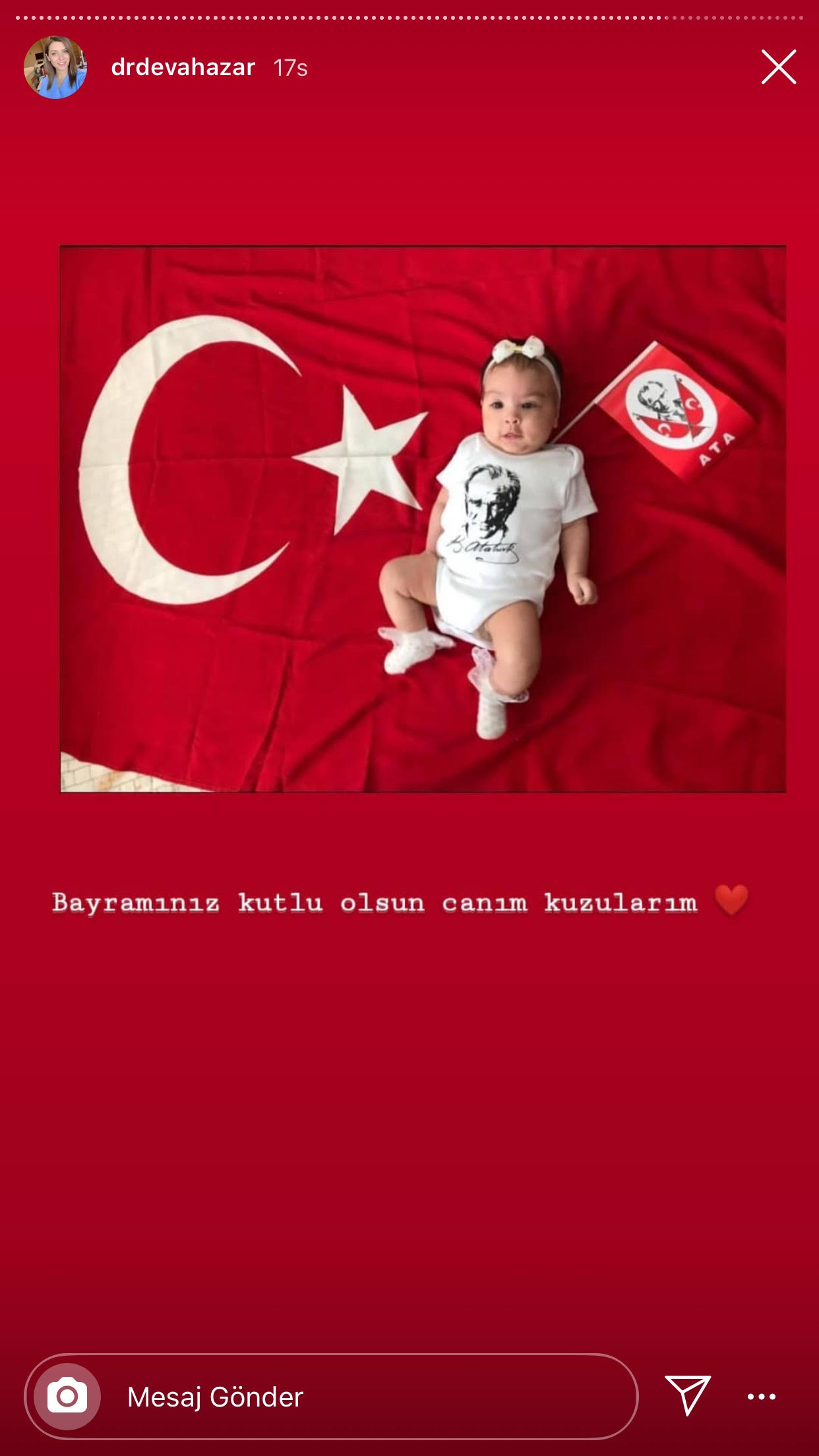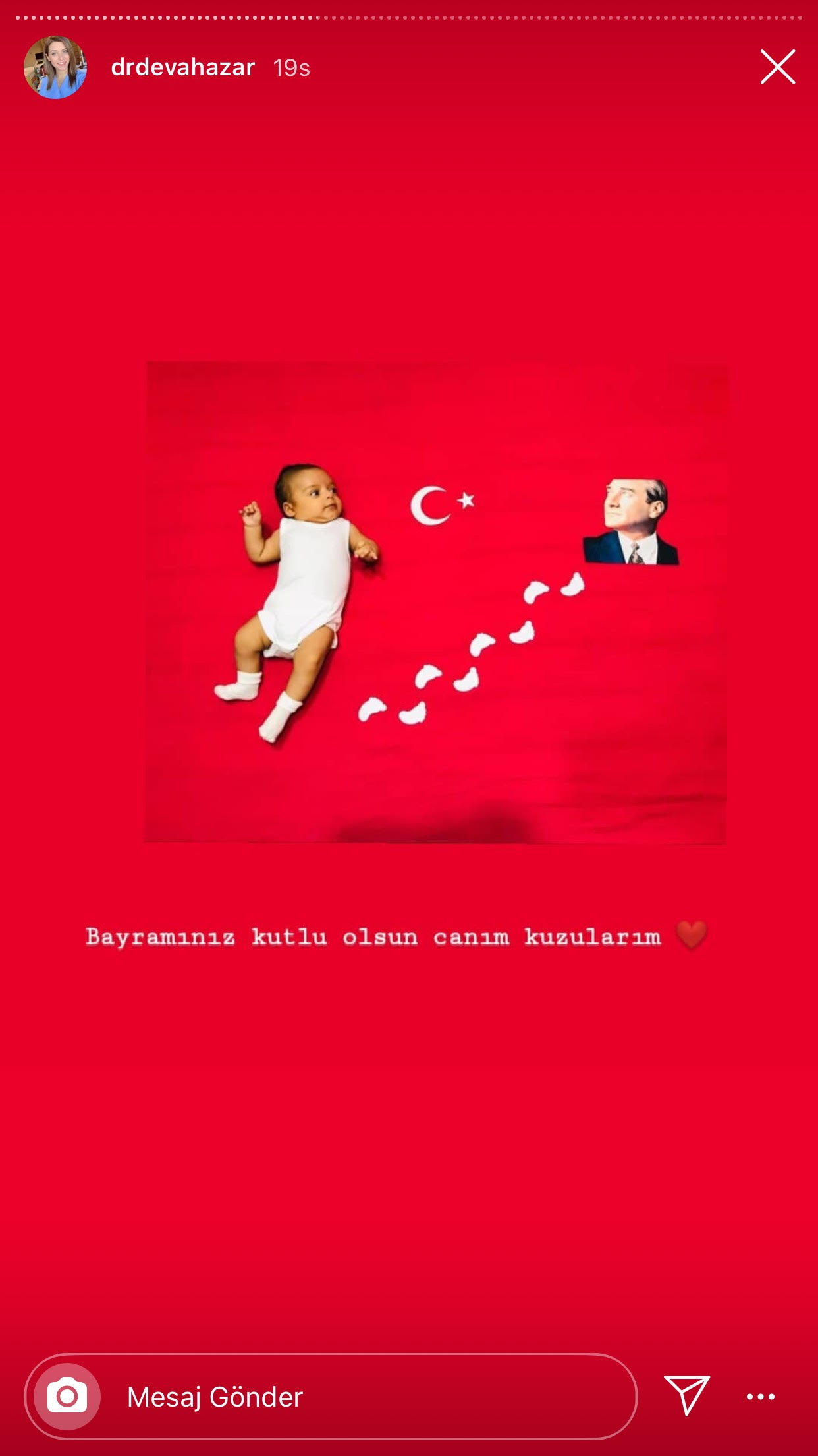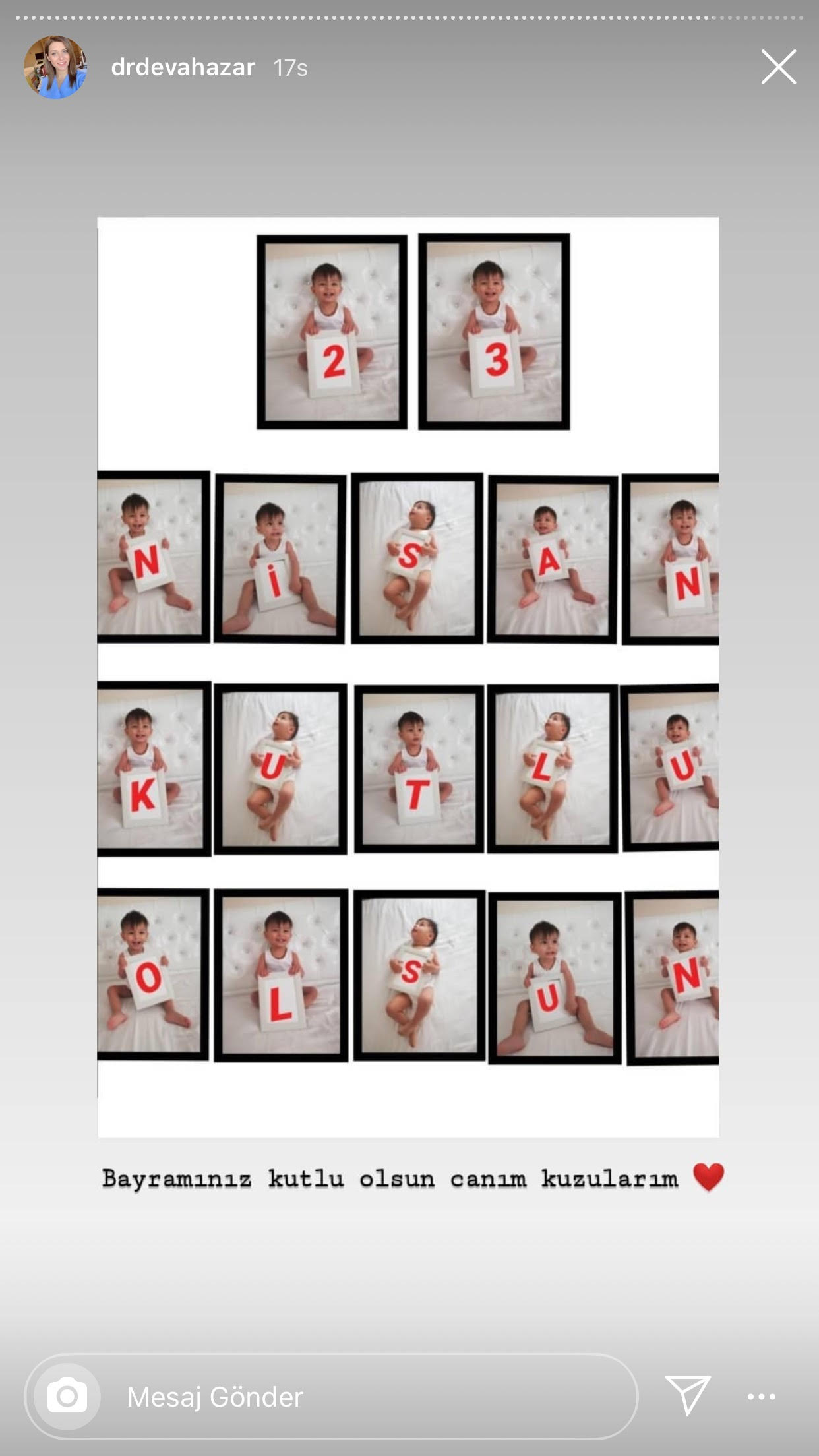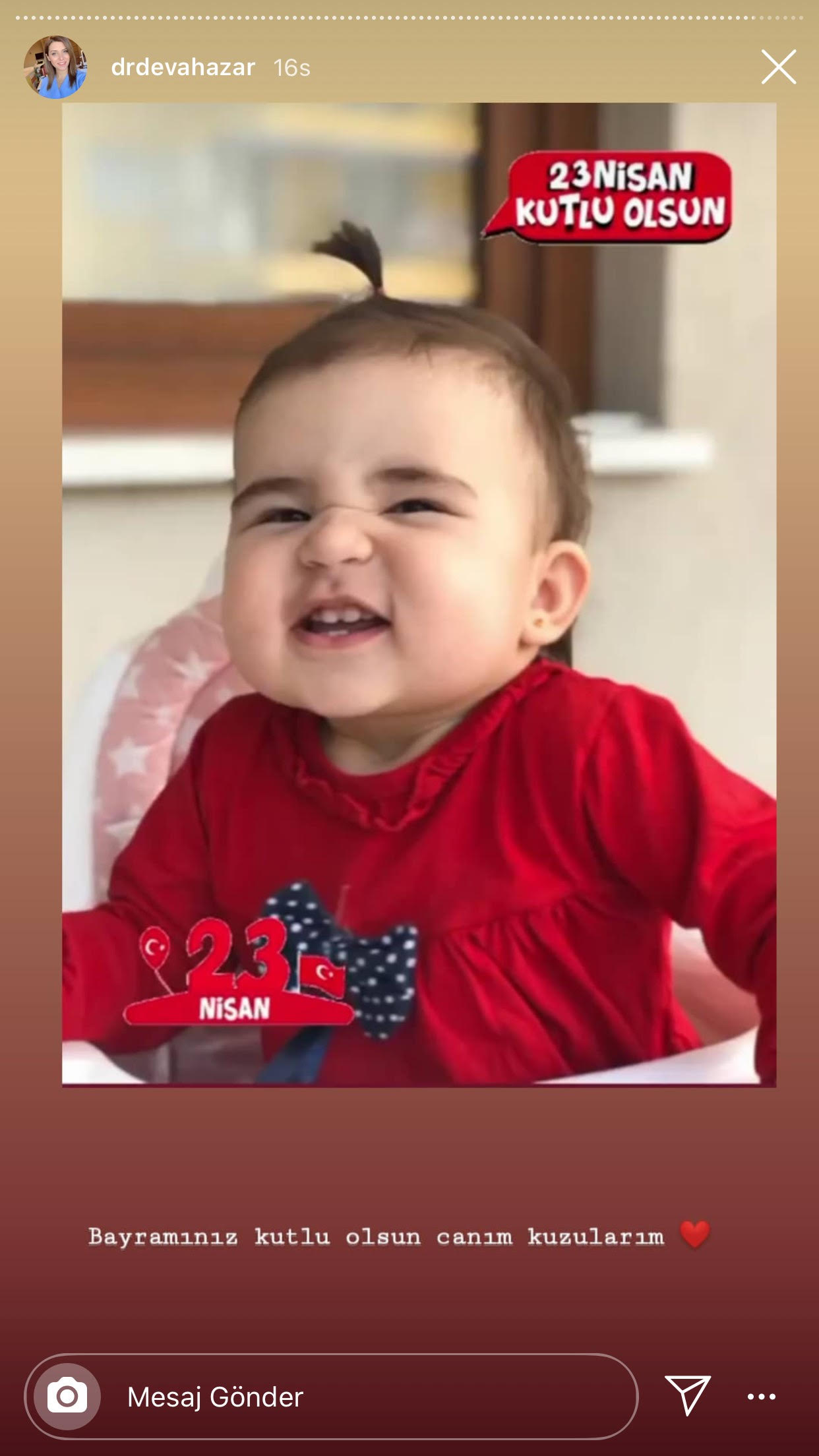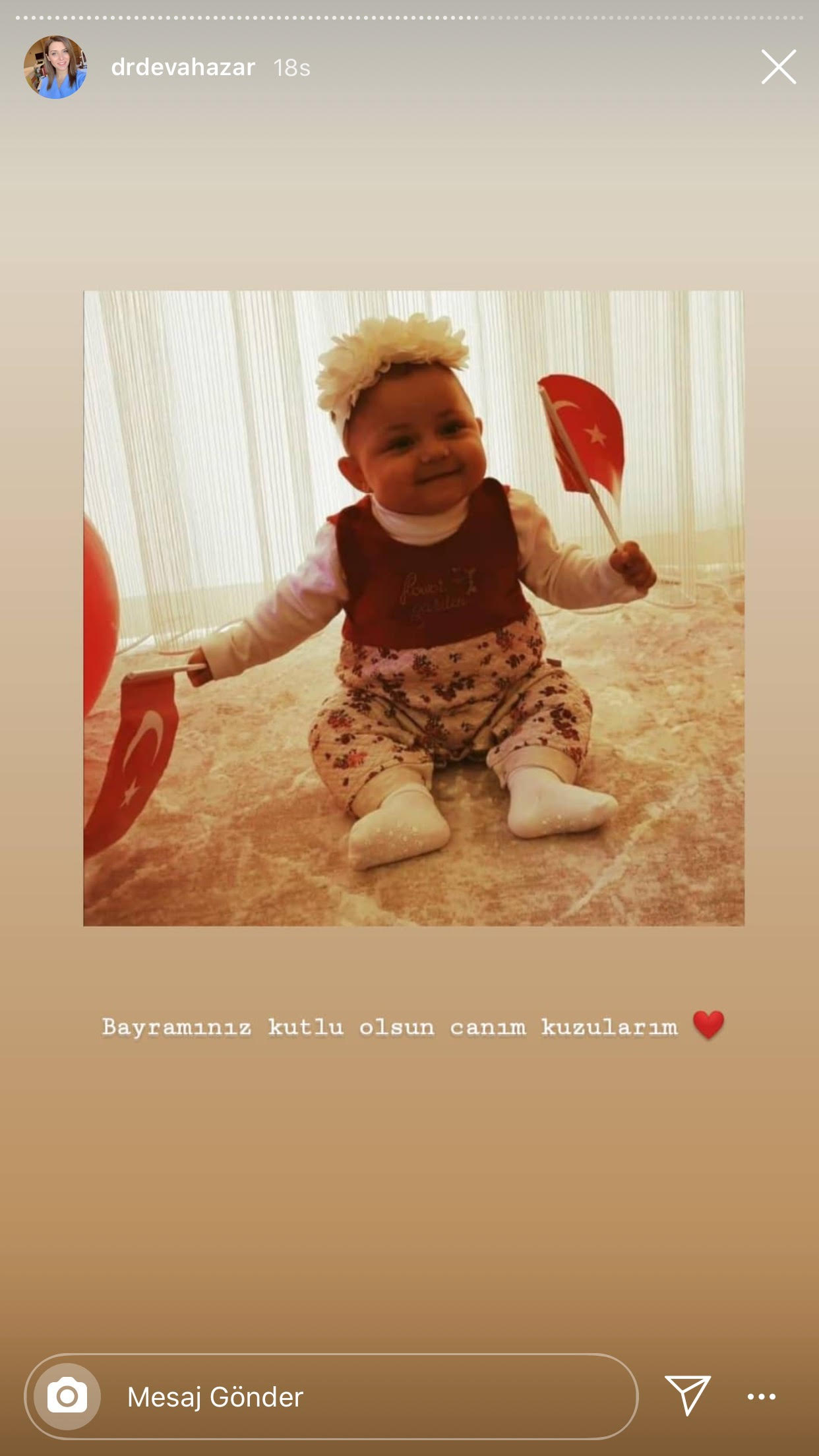 23 Nisan Ulusal Egemenlik ve Çocuk Bayramı dolayısıyla çocuklar, mutluluklarını çok sevdikleri doktorlarıyla paylaştı. Aileler çektikleri fotoğraflarını doktorlarına gönderdi. Doktor Deva Hazar, çocukların fotoğraflarının tümünü, “Bayramınız kutlu olsun canım kuzularım” notuyla paylaştı. O fotoğraflar doktorun takipçileri tarafından ilgiyle izlendi.
