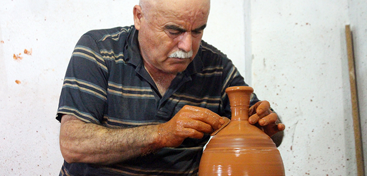 “Serinhisar’ın özgeçmiş toprağı. Karabaştı ve kumlu denilen türden topraklar. İkisinin karışması lazım. Çamur ve suyu karıştırıyoruz. Toprağı 2-3 gün dinlendiriyoruz. Ondan sonra başlıyoruz. İstediğinizi yapabilirsiniz. Bu toprağın özelliği suyun kirecini dışarıya atması ve suyu soğuk tutmasıdır. Testi içindeki su ne kadar zaman geçerse geçsin ısınmaz.”