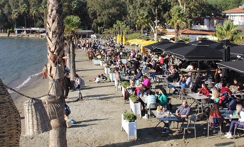 Muğla’nın ‘Sakin Kent’ unvanlı Ula ilçesi Akyaka Mahallesi’nde güneşli ve sıcak hava nedeniyle sahiller doldu. Günübirlik tatilcilerin gözdesi Akyaka sahilinde işletmelerin masa sandalyeleri yoğunluk nedeniyle adeta deniz ile birleşti. 800 metre uzunluğundaki sahil tamamen masa ve sandalyeler ile dolarken, çocuklar da deniz kumu ile oynadı. Muğla’nın yanı sıra, Denizli ve Aydın illerinden de günübirlik Akyaka’ya gelen vatandaşlar, yılın son güneşli günlerinin tadını çıkardı.