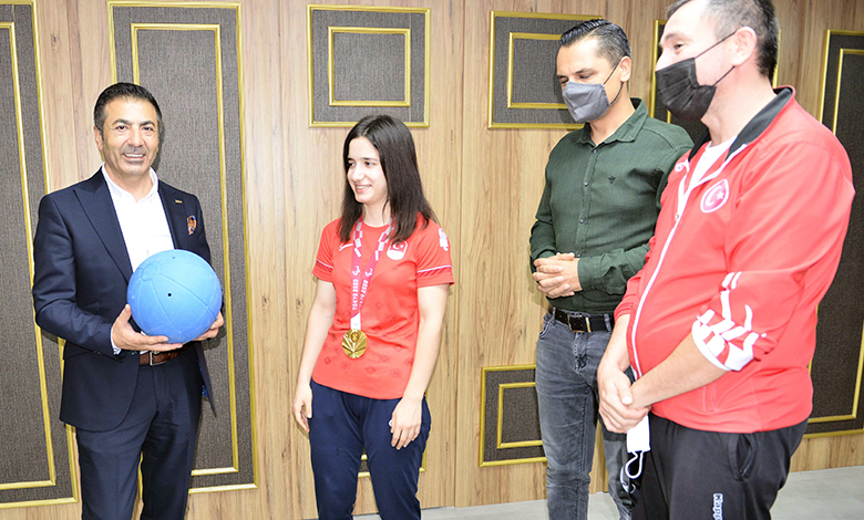 Paralimpik Golbol Oyunları’nda altın madalya kazanan Pamukkale Üniversitesi (PAÜ) öğrencisi görme engelli genç sporcu Şeydanur Kaplan, DTO Yönetim Kurulu Başkanı Uğur Erdoğan’ı ziyaret etti. Sevincini Başkan Erdoğan ile paylaştı. Genç sporcuya Alfa Özel Eğitim kurumları sahibi DTO Meclis Üyesi Muhammet Özdemir de eşlik etti. Denizli Görme Engelliler Okulu’nda 4’üncü sınıfta iken başladığı spor hayatında birçok ulusal dereceler elde ettikten sonra milli takıma seçilen Şeydanur Kaplan, 2017 yılında Finlandiya’da düzenlenen Goalball Avrupa Şampiyonası’nda gümüş madalya kazanmıştı. 2018 yılında İsveç’te düzenlenen Goalball Kadınlar Dünya Şampiyonası’nda ise dünya 2.’si oldu ve 2020 Tokyo Paralimpik Oyunları’na katılma hakkı elde etti. Yoğun bir hazırlık döneminden sonra müthiş bir mücadele sergilediği turnuvanın finalinde ABD’yi 9-2 yenerek ilimize altın madalya getirdi.
