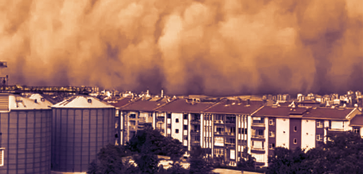Ankara’nın Polatlı ilçesinde başlayan toz bulutu, Ankara merkeze ulaştı. Şehir merkezi, toz bulutuyla kaplandı.