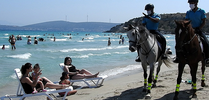 Ünlü tatil merkezi Çeşme’de jandarma sorumluluk bölgelerindeki plajlarda Atlı Jandarma Timi göreve başladı.