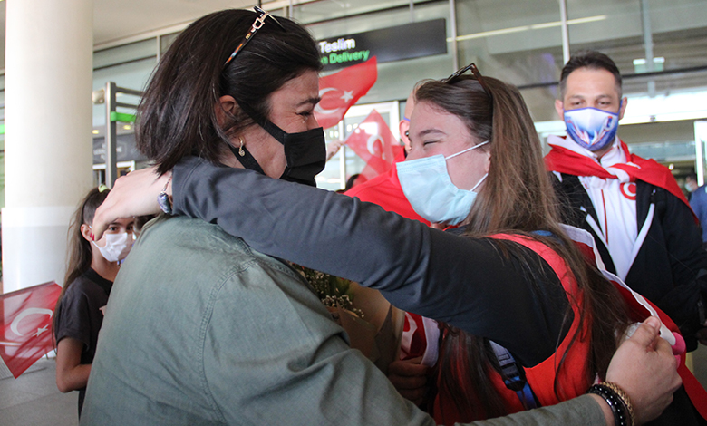 Şampiyon cimnastikçi ve kendisini karşılamaya gelen heyet daha sonra Manisa’ya gitmek için İzmir Adnan Menderes Havalimanı’ndan ayrıldı.