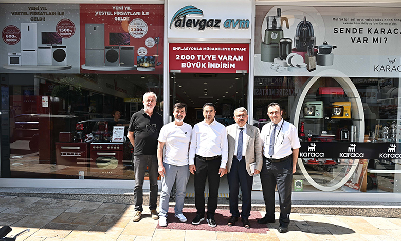 Başkan Erdoğan, 2’nci Ticari Yol ile Bayramyeri’ndeki Ticaret Odası üyeleri ile esnafı da ziyaret ederek, işlerini ve sektörlerini konuştu… Beyaz eşya sektöründe hizmet veren Alevgaz’ın sahibi Nail Gündüz ile çalışanlarına hayırlı işler diledi.