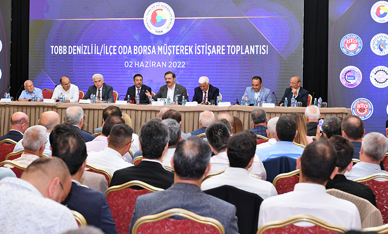 TOBB Başkanı M. Rifat Hisarcıklıoğlu’nun Denizli iş dünyasını dinlediği TOBB Denizli İl ve İlçe Oda ve Borsalarıyla İstişare Toplantısı’na, kalabalık bir davetli topluluğu katıldı. Başkan Hisarcıklıoğlu’na, TOBB Yönetim Kurulu ve Genel İdare Kurulu üyeleri ile Denizli ve ilçeleri başta olmak üzere Ankara, Aydın, Uşak, Sakarya, Manisa, Amasya, Trabzon, Nevşehir ve Polatlı’daki oda ve borsaların yönetim kurulu başkanları ile meclis başkanları ve Kredi Garanti Fonu (KGF) Yönetim Kurulu Başkanı Erdoğan Özegen eşlik etti.