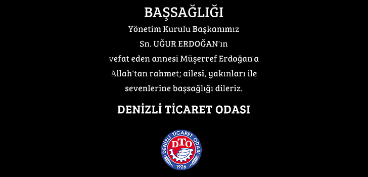 Denizli Ticaret Odası’ndan yapılan açıklamada, “Yönetim Kurulu Başkanımız Sayın Uğur Erdoğan’ın vefat eden annesi Müşerref Erdoğan’a Allah’tan rahmet; ailesi, yakınları ile sevenlerine başsağlığı dileriz” denildi.