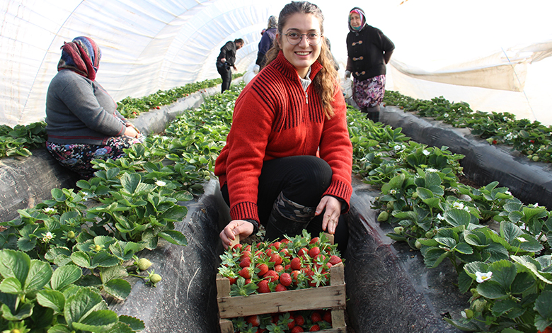 Türkiye’nin çilek üretiminde söz sahibi olan Aydın’da, yaz ve kış mevsiminde seralarda çilek üretimi yapılıyor. Tadı ve kendine has kokusu ile herkesi cezbeden çilek, fiyatıyla da üreticisinin yüzünü güldürüyor. Birçok ülkeye ihraç edilen ve iç pazarda rahatça alıcı bulan çileğin her geçen gün değeri daha da artıyor. 4 yıllık üniversite mezunu 22 yaşındaki Büşra Ertem de kendi mesleğini yapmak yerine ailesi ile birlikte çilek üretiyor.