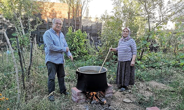 Eşi Ayşe Gülsever ise, her yıl Eylül ayında pekmez yaptıklarını belirterek, “Meşakkatli bir iş ama keyifli” diye konuştu.
