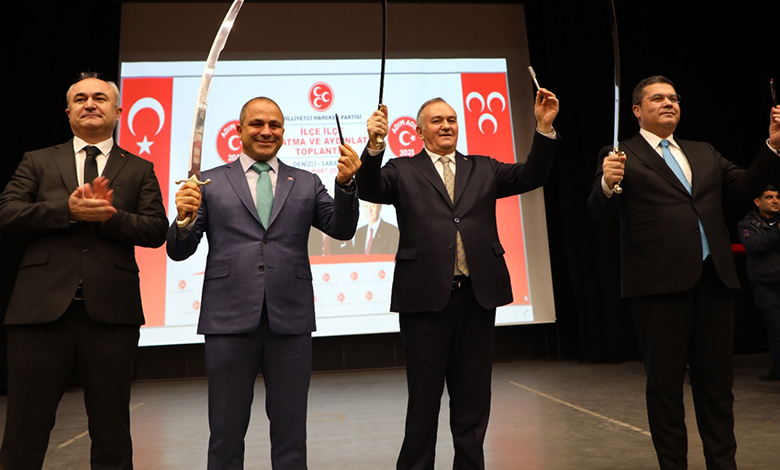 Milliyetçi Hareket Partisi (MHP)’nin “Adım Adım 2023 İlçe İlçe Anlatma ve Aydınlatma Toplantıları” kapsamında partinin kurmayları, Sarayköy, Güney, Çal ve Bekilli ilçelerinde Denizli halkıyla buluştu. Toplantıda Denizli halkına seslenen MHP TBMM Grup Başkanvekili Erkan Akçay, Genel Başkan Başdanışmanı Ruhi Ersoy ve MYK Üyesi Ali Uçak;  Türkiye’nin her türlü zorluğu ve sıkıntıya aşacağını vurgulayıp,  Cumhur İttifakının halktan aldığı güçle Güçlü Türkiye’yi imar etmeye devam edeceğinin altını çizdi. MHP Denizli İl Başkanı Yusuf Garip’in hediye ettiği Yatağan Palasını bir ellerine alan 3 MHP’li kurmay diğer ellerine de kalem alarak,  Cumhur İttifakı olarak 2023 hedeflerine doğru emin adımlarla ilerlediklerinin mesajını verdi.