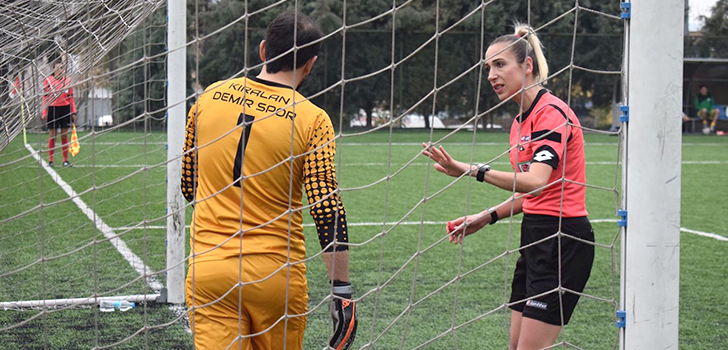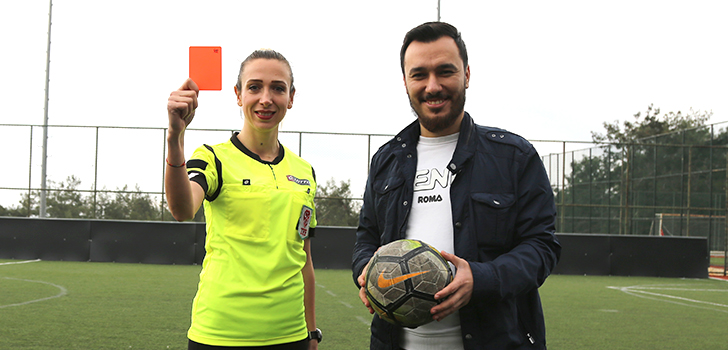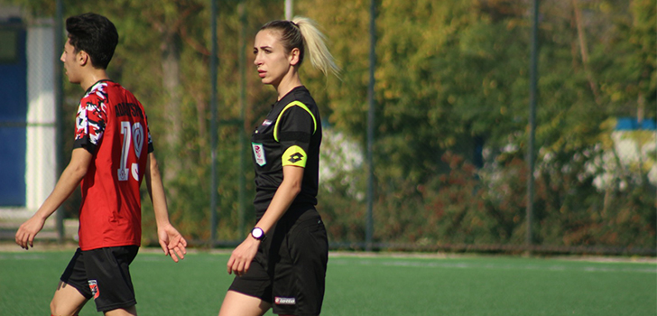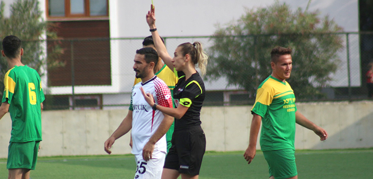Keyifli bir röportaj için aslen Bayburtlu ama şimdilerde Denizlili hakemimizle Şirinköy Futbol Sahası’nda buluşmak üzere sözleşdik. Şeyma hoca, saha içerisinde olduğu gibi dışarıda da çok dakik. Gülerek kolundaki kronometreli saate bakıyor ve ‘Tam zamanında geldim’ diyor. Hakem üniformasıyla yeşil sahaya ayak basıyor. Elinde uğurlu olduğunu söylediği kırmızı düdüğü var. Kırmızı ve sarı renkteki kartları da hazır. Havanın da biraz yağışlı olmasına da aldırış etmiyor.