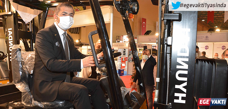 Denizli Ticaret Odası (DTO) Başkanı Uğur Erdoğan, Kalabalık bir davetli topluluğu ile ziyaretçilere kapılarını açan 3. Ege Tekstil ve Konfeksiyon Makineleri, Tekstil Kimyasalları ve Tekstil Baskı Teknolojileri Fuarı’na katılan üretici firmaları yalnız bırakmadı. Denizli protokolü de oradaydı. 8’i Denizli’den 86 firmanın aynı alanda buluştuğu ve ürünlerini sergilediği fuarın ilk günü, büyük ilgi gördü. Fuarda renkli görüntüler de vardı… Denizli Ticaret Odası Başkanı Erdoğan, stant açan üretici firmalardan bir tanesinin fork-lift iş makinasını kullanarak test etti.