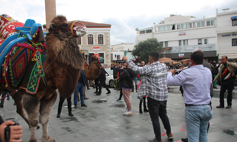Eski Otogar’dan 5 deve ile başlayan kortej, davul zurna eşliğinde Cevat Şakir Caddesi’nden Bodrum Belediye Meydanı’na ulaştı.