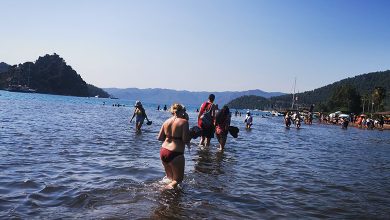 Kızkumu plajına yerli ve yabancı turistler yoğun ilgi gösterirken, zaman zaman sosyal mesafe sıfıra indi. Maske takmayan vatandaşlar ise tepki…