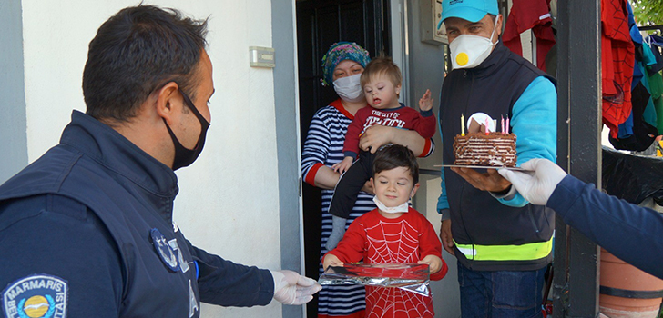 Marmaris Belediyesi Zabıta Müdürlüğü ekipleri, Temizlik İşleri Müdürlüğü görevlisi İbrahim Sezer’in oğlu 6 yaşındaki Kerem’e doğum günü sürprizi yaptı. Korona…