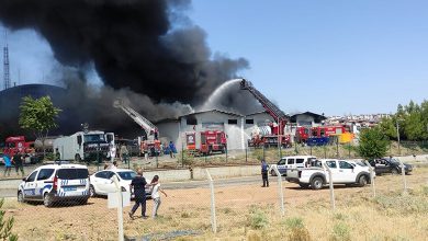 Denizli’de lojistik deposunda çıkan yangına itfaiye ve TOMA’larla müdahale ediliyor
