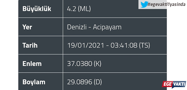 AFAD’ın verilerine göre Denizli’nin Acıpayam ilçesinde 4,2 büyüklüğünde deprem meydana geldi. Ege Haber (Denizli Haber) Denizli’de merkez üssü Acıpayam ilçesi…