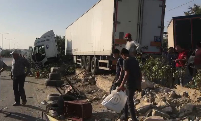 Öte yanda, freni boşalan tırın önündeki araçlara çarpması ve ayağından yaralanan kişinin markete sığınması güvenlik kameralarına yansıdı.