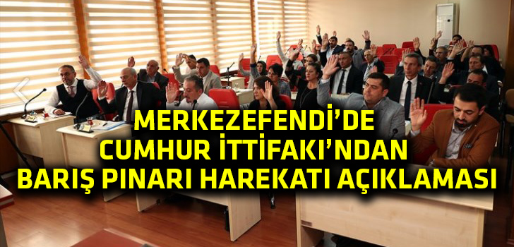 Merkezefendi Belediyesi AK Parti ve MHP Grupları, Barış Pınarı Harekatı’na yaptığı destek açıklamasında, “Devletimizin yalnızca terör örgütüne karşı değil, uluslararası destekçilerine karşı da verdiği büyük mücadele sınırlarımız içinde olduğu kadar sınırlarımız dışında da yürütülmektedir. Teröre karşı milletçe verdiğimiz bu mücadelenin bir diğer ayağını da Barış Pınarı Harekâtı oluşturmaktadır” ifadelerine yer verdi.
