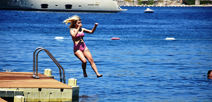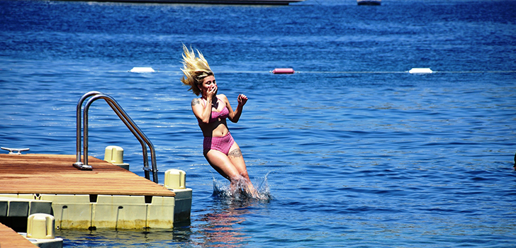 Kurban bayramı tatilini Bodrum’da değerlendiren İrem Derici önceki gün Yalıkavak’ta bir beach görüntülendi. İskeleden denize atlarken objektiflere takılan Derici yaklaşık 2 saat denizde kaldı.