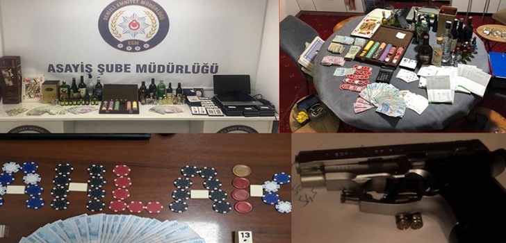 Öte yandan, denetlemeler kapsamında kumar oyunlarında kullanıldığı tespit edilen 20 bin 335 TL, 100 Amerikan Doları ve 338 adet oyun pulu ele geçirildi.