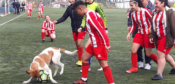 Manisa’da, TFF Kadınlar 3. Lig karşılaşmasında sahaya giren bir sokak köpeği renkli görüntülere sahne oldu. Yaklaşık 10 dakika boyunca sahada topla oynayan köpeği sahadan çıkarmak için herkes seferber olurken, ortaya ilginç görüntüler çıktı.