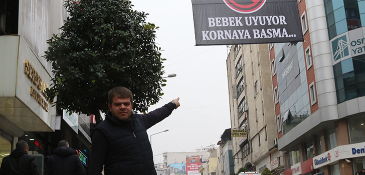 Denizli’de bir esnaf, korna seslerinden rahatsız olunca iş yerinin bulunduğu caddeye ‘Bebek uyuyor kornaya basma’ yazılı afiş astı. Afiş nedeniyle caddede korna sesi yüzde 50 azaldı.