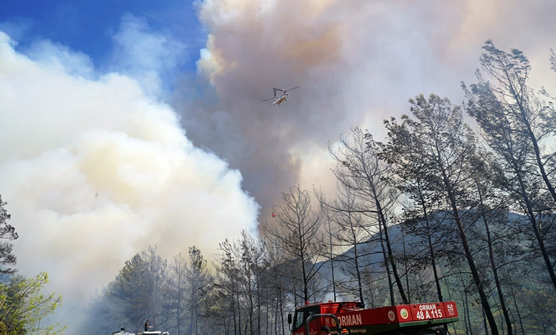 Muğla’nın Marmaris ilçesinde öğle saatlerinde başlayan orman yangını 7 saattir devam ederken, söndürme çalışmaları havadan ve karadan yoğun bir şekilde sürüyor.
