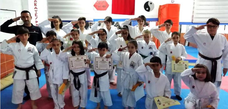 Denizli’nin Merkezefendi İlçesi’nde faaliyet gösteren Altın Kuşak Karate İhtisas Spor Kulübü sporcuları bir süre aldıkları eğitimin ardından kuşak terfi sınavına girdi. Sınav sonrası ise öğrenciler, Barış Pınarı Harekatı’ndaki Mehmetçiğe asker selamı gönderdi. Antrenör Süleyman Altın, “Amacımız çocuk ve gençlerimizin sadece sportif değil, ahlaklı, vatanına ve milletine bağlı bireyler yetiştirmek istiyoruz” dedi.