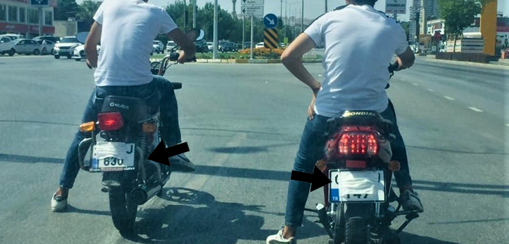 Denizli’de 2 genç maskeyi motosikletlerinin plaka kısmına taktı. Gençler bu hareketleriyle ‘Yok artık’ dedirtti.