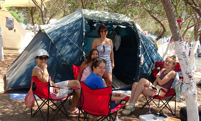 Pandemi sürecinde en ekonomik izole tatil olarak çadır kampını tercih eden tatilciler, Marmaris Hisarönü Mahallesi’nde bulunan özel kamp alanlarına akın etti. Kamp alanındaki tüm yerler dolarken, tatilciler ilçe merkezlerinden çok kırsal mahallelerdeki çadır kamplarını tercih etti. Konya’dan dört kızı ile tatile gelen Şahide Baran, “Biz hep çadır tatilini tercih ediyoruz, bayramımızı da burada geçireceğiz. Doğa ile deniz ile iç içe olmanın keyfi çok güzel. Birçok şehre kamp yapmaya gittik ama yine Marmaris’ten vazgeçemedik. Hem şehrin içi hem de buralar çok güzel” dedi.