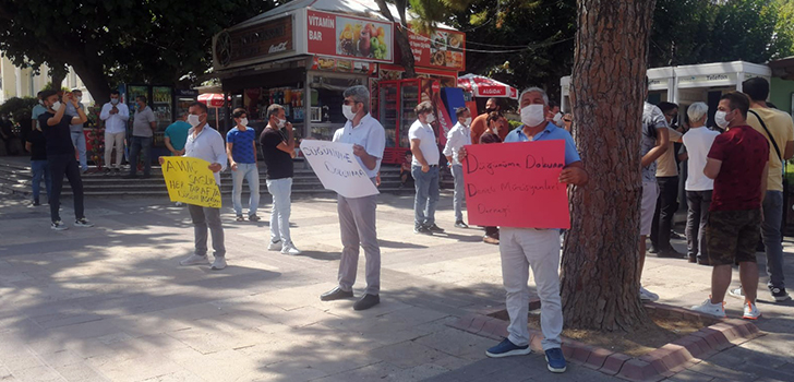 Denizli İl Umumi Hıfzıssıhha Meclisi’nin aldığı karar ile sokak düğünleri yasaklanması ardından sokak müzisyenleri kararı protesto etmek için valilik önünde toplandı.