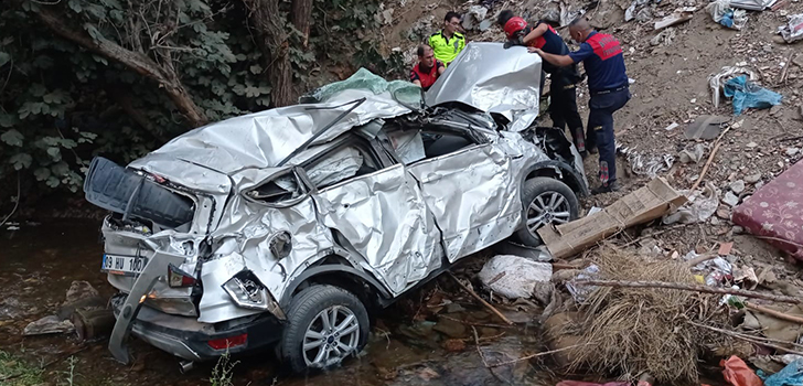 Olay, Kalfaköy Mahallesi yolu üzerinde su depoları mevkiinde saat 17.00 sularında meydana geldi. Edinilen bilgiye göre, şekilde Raziye Özlem Uşaklı (49) idaresindeki 09 HU 100 plakalı otomobil, yaklaşık 100 metre yükseklikten dereye uçtu. İhbar üzerine bölgeye çok sayıda ambulans ve itfaiye ekipleri sevk edildi. Olay yerine gelen ekipler araç içerisinde sıkışan Raziye Özlem Uşaklı ve 9 yaşındaki kızı Elif Uşaklı’yı kurtarmak için çalışma başlattı. Uzun uğraşlar sonunda dereye inen itfaiye ekipleri aracın kapılarını keserek ters dönen araç içerisindeki 2 kişiye ulaştı. 112 sağlık ekiplerinin olay yerindeki ilk müdahaleleri sonrasında 9 yaşındaki Elif Uşaklı’nın olay yerinde hayatını kaybettiğini tespit ederken ağır yaralı olan anne Raziye Özlem Uşaklı da ambulansla hastaneye kaldırıldı. Hastaneye kaldırılan Uşaklı, yapılan tüm müdahalelere rağmen kurtarılamadı. Dereye uçan araç çekici marifetiyle çıkartıldı.