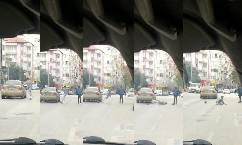 Denizli’de trafiğin yoğun olduğu caddede hareket halindeki otomobile tutunan kaykay ve patenli iki gencin, tehlikeli yolculuğu az daha faciayla bitiyordu. Dengesini kaybederek yere düşen gençlerden biri, akan trafikte ölümden kıl payı kurtuldu.