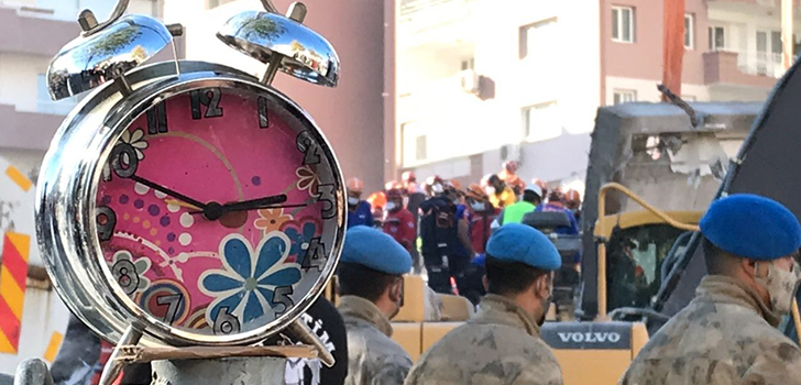 İzmir’de merkez üssü Seferihisar’da meydana gelen 6,6 büyüklüğündeki depremin en çok hasara uğrattığı noktalardan biri Bayraklı ilçesi oldu. Manavkuyu bölgesinde bulunan 8 katlı Rıza Bey Apartmanı’nda enkaz çalışmaları devam ediyor. Çok sayıda kişinin cansız bedeninin çıkarıldığı binadan bir çocuğa ait olduğu düşünülen masa saati de çıkartıldı. O saatin, depremin meydana geldiği 14.51’de durduğu görüldü. Masa saatinin hangi çocuğa ait olduğu ise bilinmiyor.