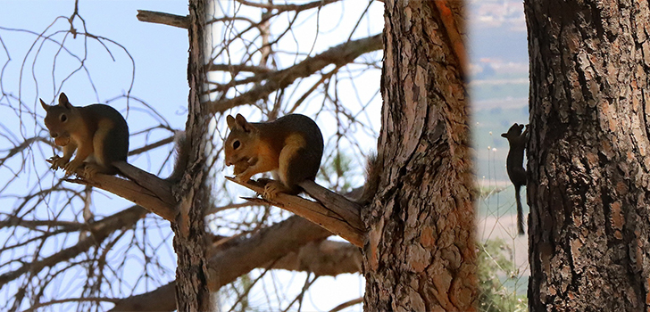 Manisa’nın Saruhanlı ilçesinde bir sincabın, çam ağacının dalında yemek yediği anlar objektiflere takıldı.