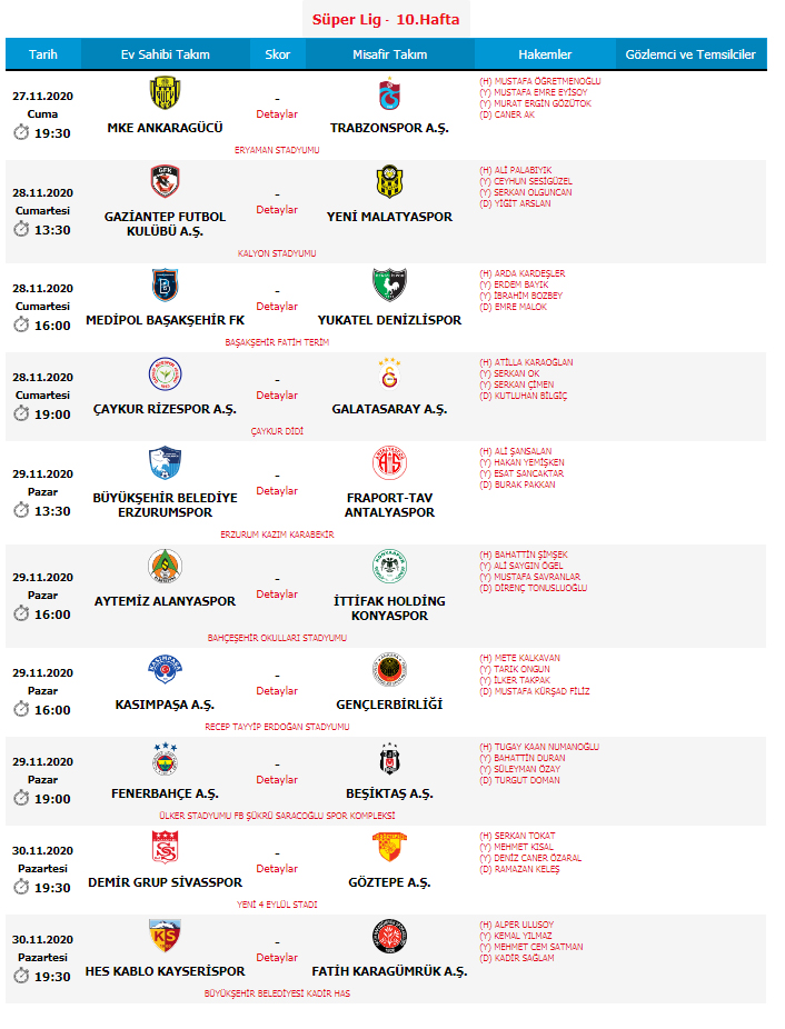 Süper Lig’in 10. haftasında müsabakaları yönetecek hakemler açıklandı.
