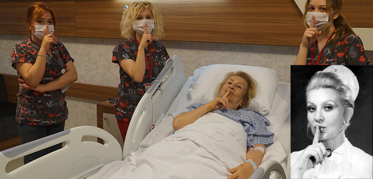 Daha sonra Dilek Tunca, hemşireler ile birlikte “Sus” pozu verdi.