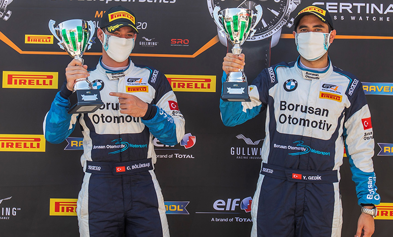 Almanya’nın Nürburgring pistinde gerçekleşen GT4 Avrupa Serisi 5. ayak ilk yarışında 11 kapı numarasıyla mücadele eden Yağız Gedik ve Hasan Tansu, genel klasmanı 7’inci, PRO-AM klasmanını ise 2. sırada tamamlayarak podyumda kupa kaldırdı. GT4 Avrupa Serisi’nde ülkemizi temsil eden ilk ve tek Türk takımında yer alan Yağız Gedik ve Hasan Tansu’nun elde ettikleri bu başarı gurur kaynağı oldu.