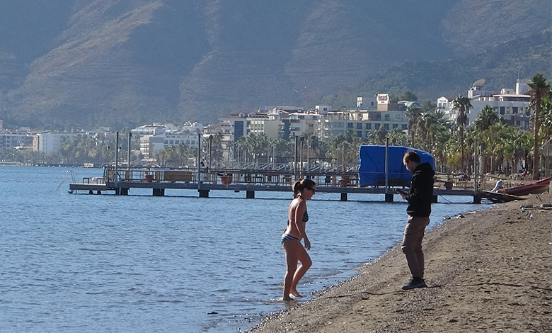 Hava sıcaklığının 20 dereceye çıktığı Marmaris’te özellikle yerleşik yaşayan yabancılar Aralık ayında da denize girmeye devam ediyorlar. Olta balıkçıları ise oltalarını denize atarak balık avlamayı sürdürüyor. 66 yaşındaki Selahattin Damaroğlu, “Uzun zamandır balık yok. Biz de ‘sadece balıkta geçen zaman ömürden yemezmiş derler’ diyerek hobi olarak balık beklemeye devam ediyoruz. Az önce üç genç hanım denize giriyordu, eskiden böyle havalarda bizde girerdik, Marmaris için normal bir durum’’ dedi.
