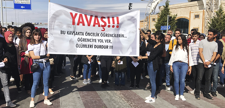 Afyonkarahisar’da geçen hafta üniversite kavşağında yolun karşısına geçmeye çalışırken otomobilin çarpması sonucu Emine Erduru hayatını kaybetmiş, arkadaşı Cennet Alkan ise ağır yaralanmıştı. Afyon Kocatepe Üniversitesi Eğitim Fakültesi Sosyal Bilgiler Öğretmenliği Bölümü 1. sınıf öğrencisi olan Emine Erduru’nun ölümü ile büyük üzüntü yaşayan okul arkadaşları kazanın olduğu yerde toplanarak karanfil bıraktı ve trafik önlemlerinin arttırılması talebinde bulundu.