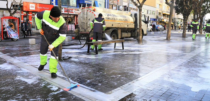 Çin’in Wuhan kentinde ortaya çıkan ve kısa zamanda tüm dünyayı etkisi altına alan korona virüs tehdidi, Dünya Sağlık Örgütü (DSÖ) tarafından acil durum olarak ilan edilmişti. Geçtiğimiz günlerde Türkiye’de de tespit edilen vak’a ile birçok tedbir hayata geçirilirken süreç, alınan üst düzey önlemlerle yürütülüyor. Bu kapsamda tüm yurtta olduğu gibi okulların ve üniversitelerin tatil edilmesinin ardından kamu kurumlarında ve toplu alanlarda sıkı bir temizlik çalışması başlatıldı. Uşak Belediyesi de başlattığı hijyen çalışmaları kapsamında kenti adeta temizlik ekipleriyle kuşattı. Ekiplerin sabunlu su ile özel bir solüsyonu karışımını kentin en işlek caddesine ve diğer tüm sokaklarına dökerek temizlemesi sosyal medyada yoğun ilgi gördü.